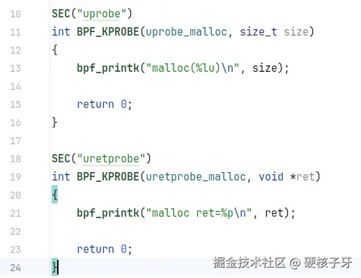ebpf的代码是在Linux内核中的BPF虚拟机中运行的,第二个问题来了:uprobe malloc与uretprobe malloc是如何与Linux内核中的ebpf程序关联上的?