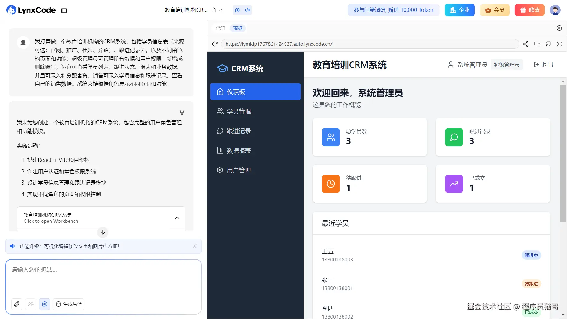 最开始我也以为,做 AI 项目难在代码、框架和各种看不懂的名词。不会前端、不懂后端、没做过完整系统,似乎每一条都足以把人劝退。但真正用 Lynx 去做项目之后,技术反而成了最轻的一环。很多原本以为需要“专业背景”的事情,只要想清楚思路,用自然语言就能一步步跑起来。