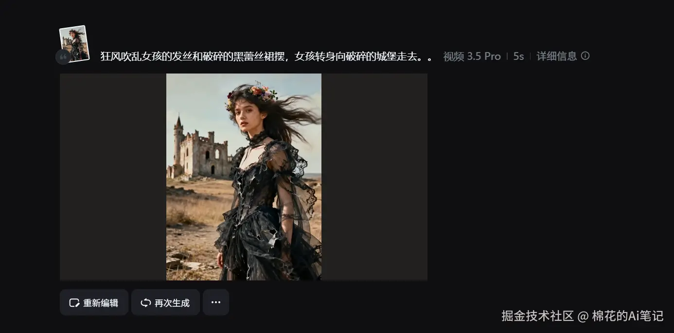为了更直观地展示新手怎么做电影级质感Ai视频,我使用即梦AI 制作了一组以“荒原古堡与神秘少女”为主题的叙事短片。以下是完整的操作复盘。