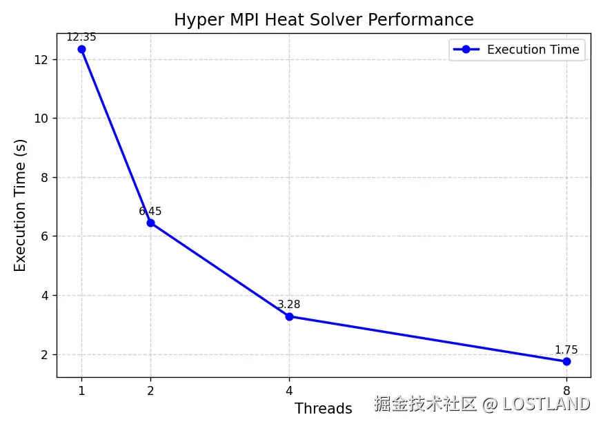 - 保持网格划分逻辑不变,每个进程负责连续行,边界行通信仍通过 Hyper MPI 实现。