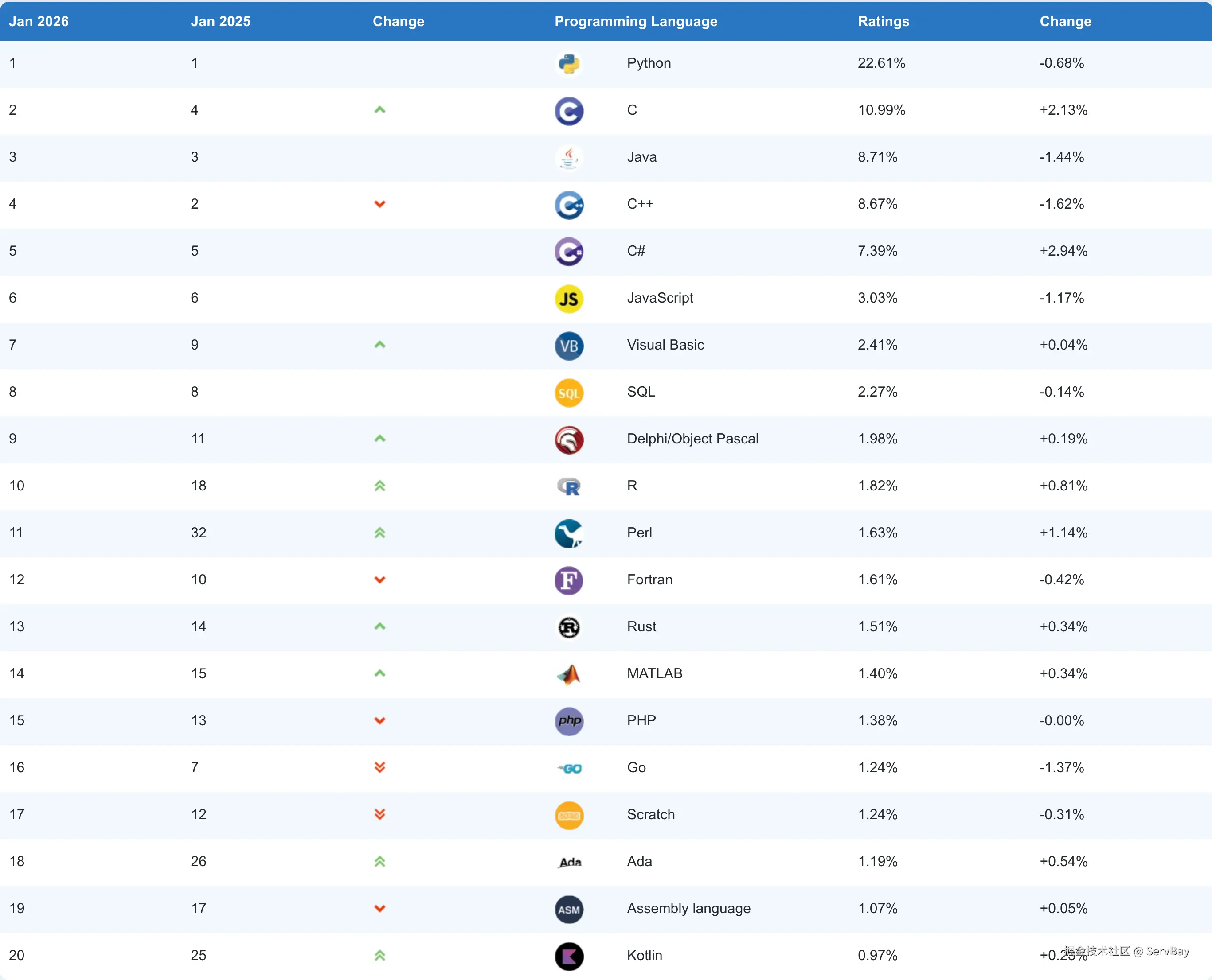 TIOBE 公布的数据显示,C# 以 2.94% 的年度最大涨幅再度获评2025 年度编程语言,这是 C# 在三年内第二次获此殊荣,凭借的是其在榜单上最大的年度增长幅度。