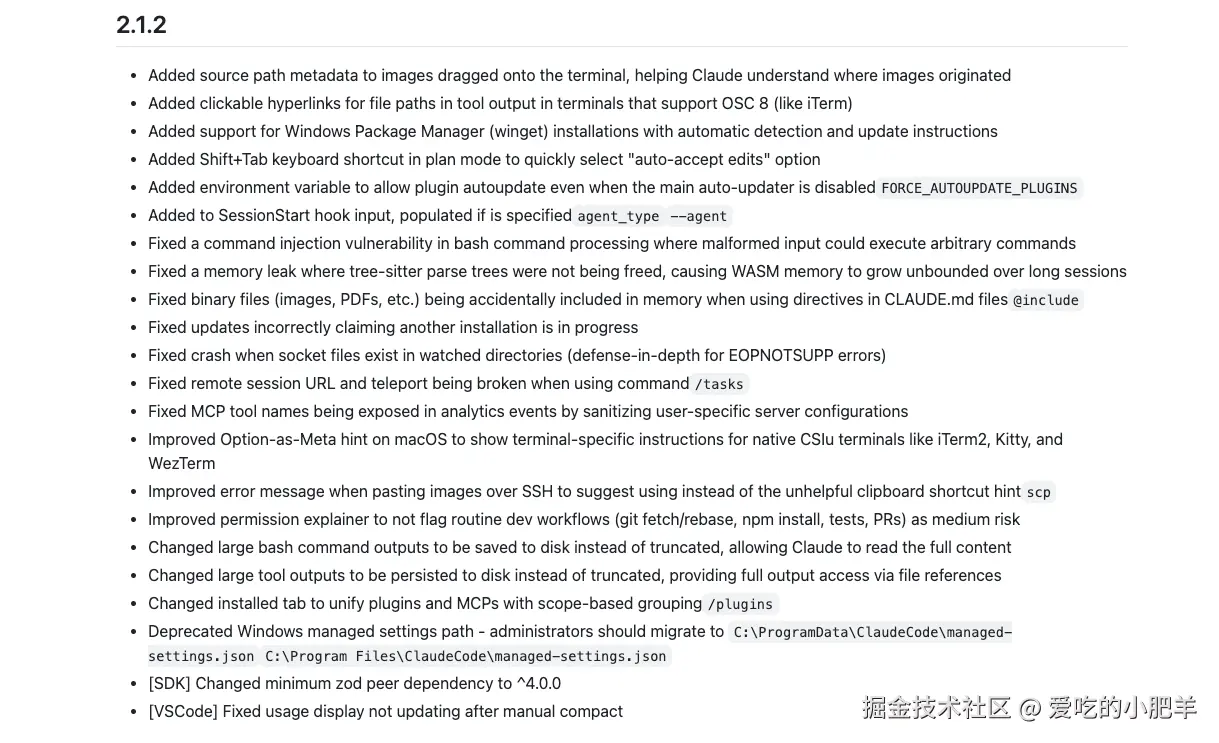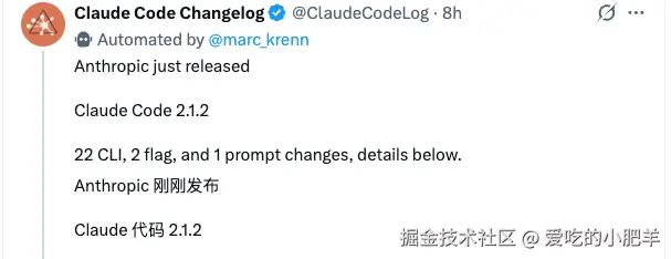就在今天凌晨,Anthropic 官方直接跳过了多个小版本,将 Claude Code 从 2.0.x 径直推向了 2.1.0。