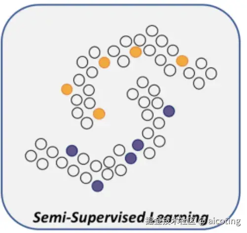 - 利用无标签数据 借助无标签数据的分布特性,让模型捕捉数据的潜在结构。常见方式包括聚类假设(相似的样本往往属于同一类别)和流形假设(高维数据往往分布在低维流形上)。