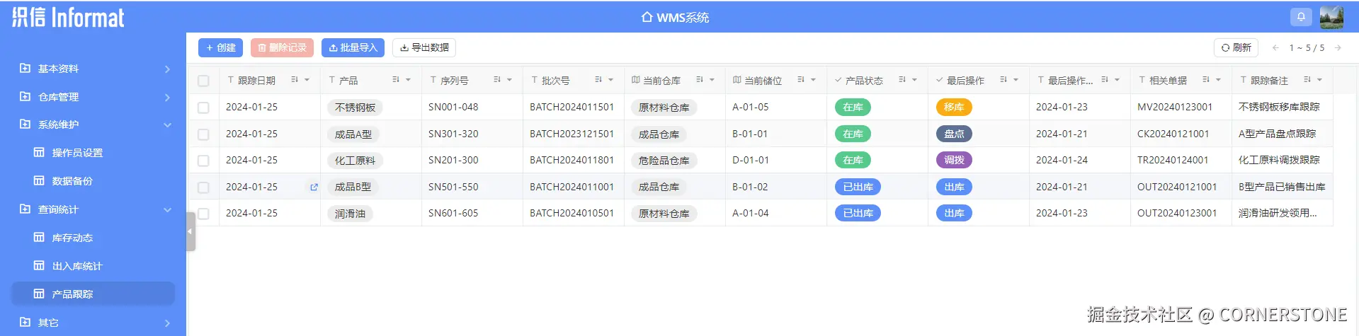 - 出入库跟踪:可追溯单个产品或批次的完整流转记录;