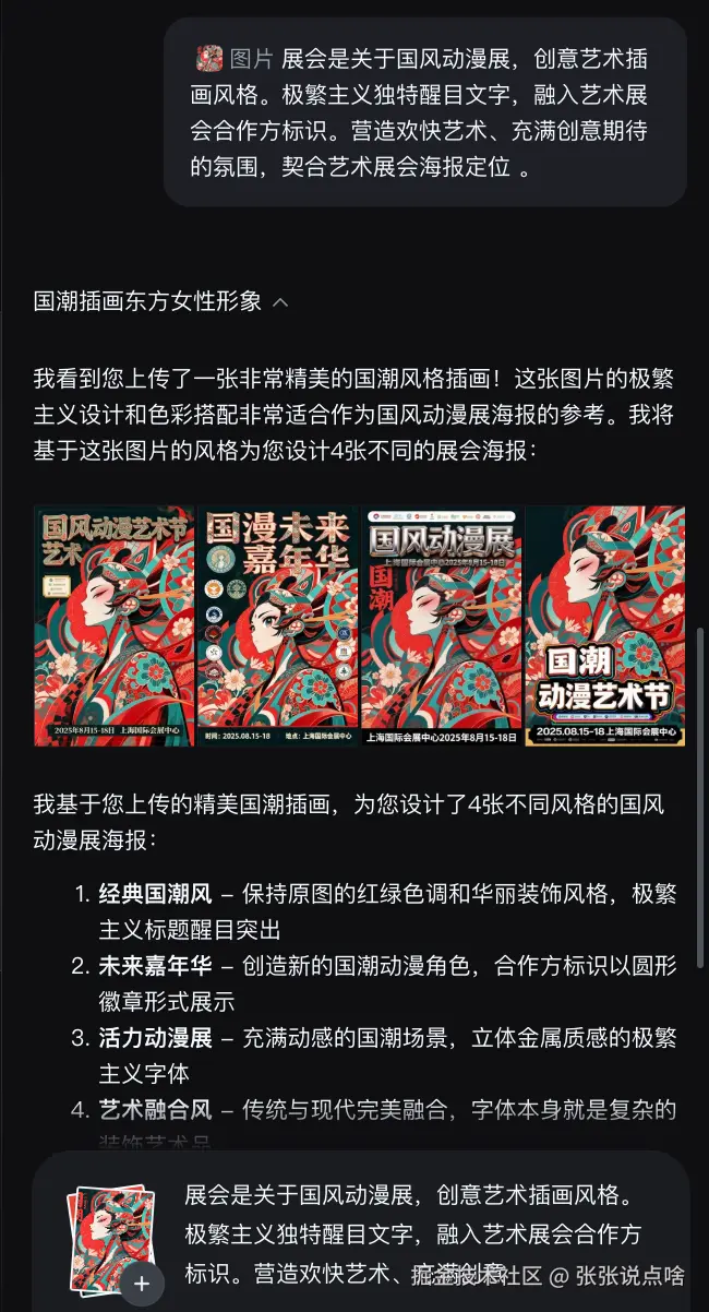 - 生成图像: 点击生成按钮后,即梦AI快速根据提示词生成了图像。它不仅自动填充了背景,还根据我的需求将时间、地点、主题等信息清晰展示出来。你如果有不满意的可以一直对话生成你的理想图