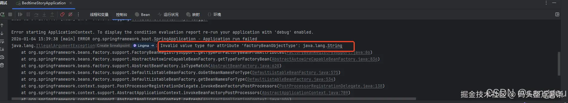 出问题的是 Spring 在解析 FactoryBean 类型