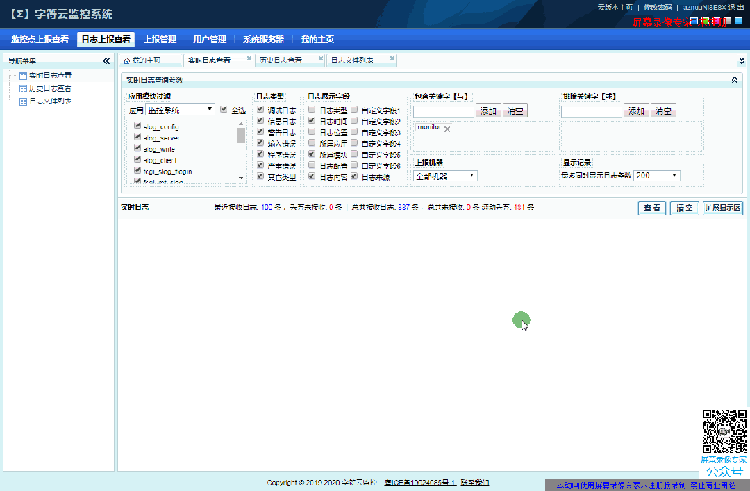 分布式日志系统:支持频率限制、日志染色、自定义字段;控制台支持关键字/排除词/时间/机器等多条件过滤