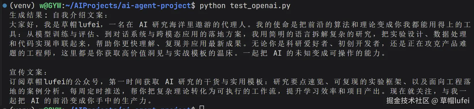 例如,下面继续调用 gpt-5-nano 模型,让它给 '草帽lufei' 写一段自我介绍和宣传文案