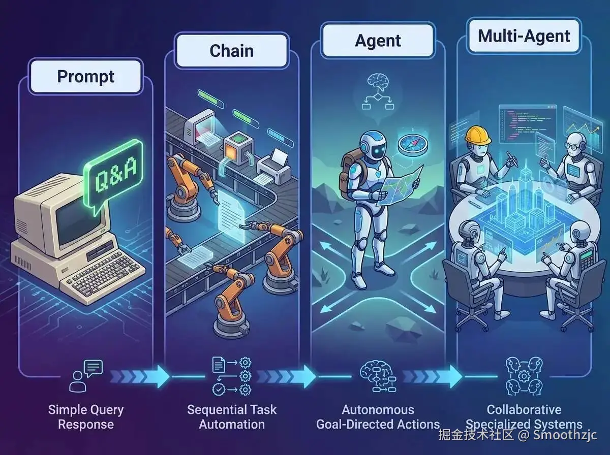 自从 ChatGPT 爆火以来,大家都在研究怎么把这股“聪明劲”用到实际工作中。简单来说,我们对 AI 的使用方式经历了一场从“简单对话”到“自主干活”的进化。
