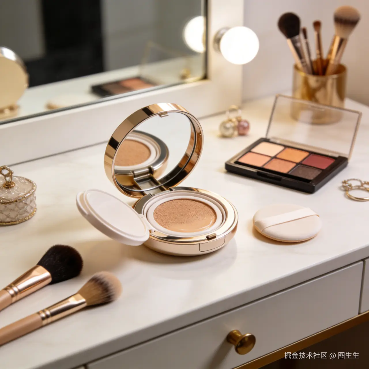 ▶案例二:美妆类目—气垫BB霜,生成美妆博主试色场景图