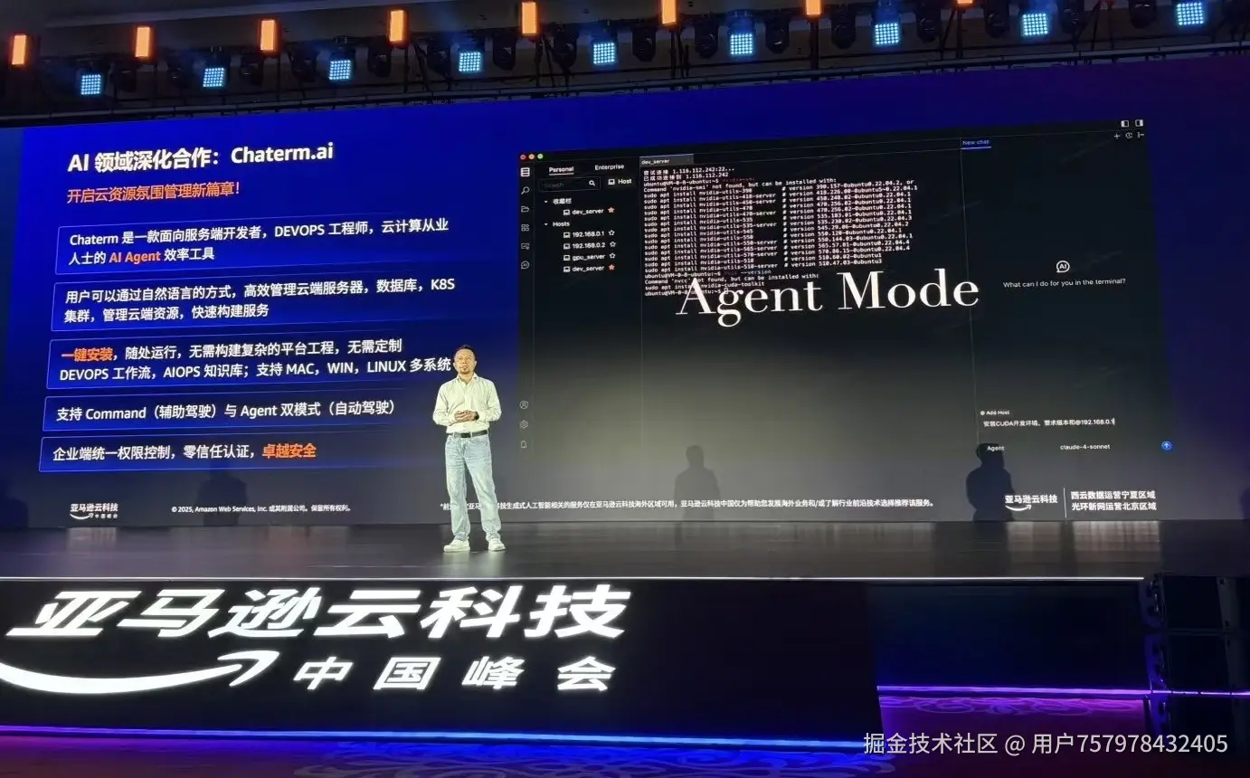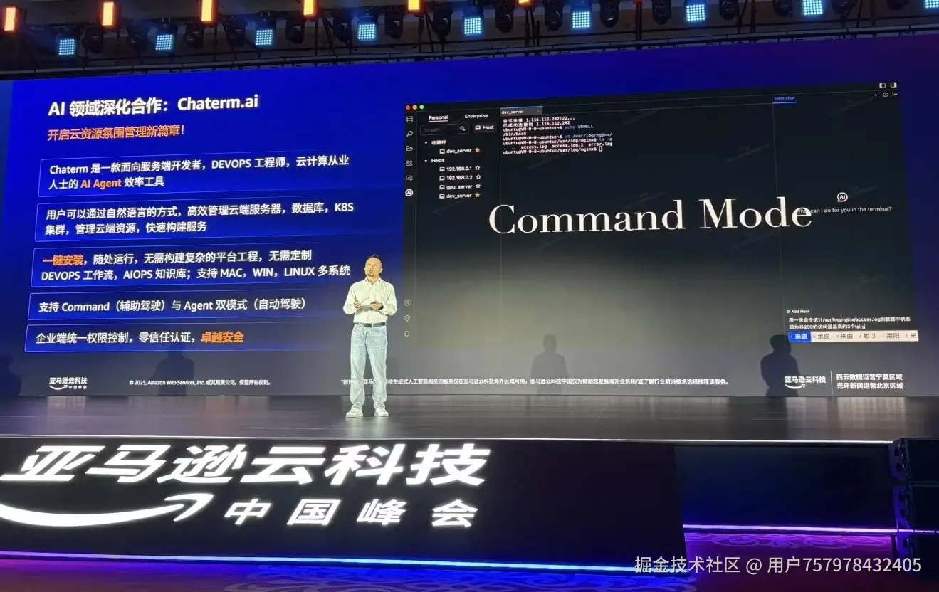 Chaterm作为GenAI优秀优秀创新项目的代表,在AWS Summit Keynote上向全球的开发者们开源了。