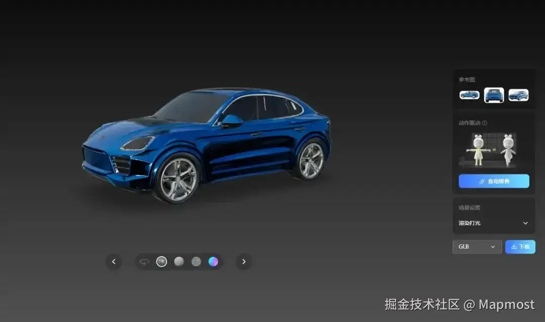 在Mapmost智慧收费站项目中,这一点帮我们省了大功夫。项目需要大量不同类型的车辆模型来模拟收费流程,如果纯手工做,光是车型变化就要折腾好几天。用AI生成后,几分钟就能出一辆结构完整的车,样式、颜色还能根据场景需求调整。
