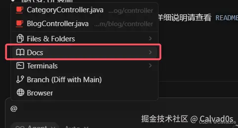 @引用是Cursor提供的上下文引用机制,通过在对话中输入@符号,可引用文件、文件夹、代码片段等项目相关内容,让AI理解项目完整上下文,就像给AI提供“参考资料”,帮助其基于项目实际情况给出更准确的代码建议。各引用类型的详细说明如下: