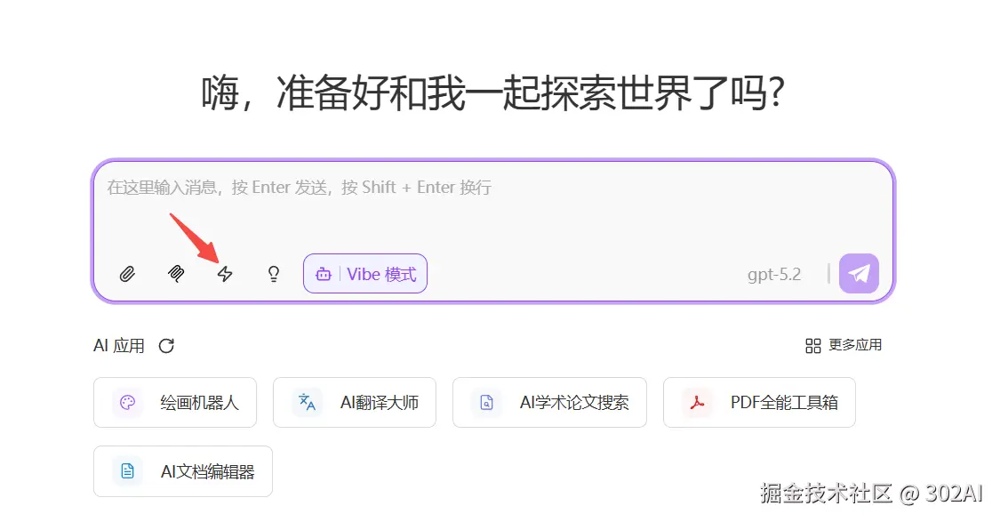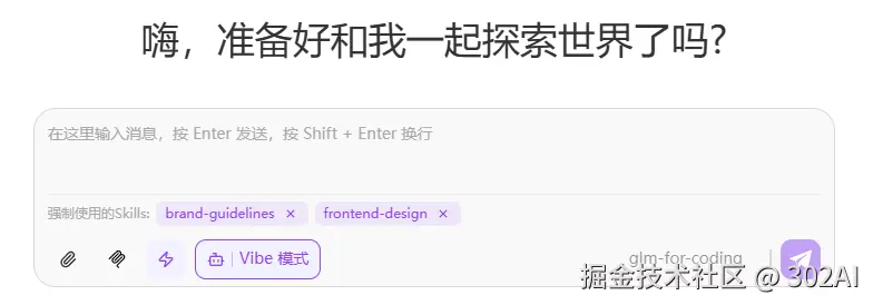 打开302 AI Studio,打开Vibe模式,会看到一个Skills的小图标。