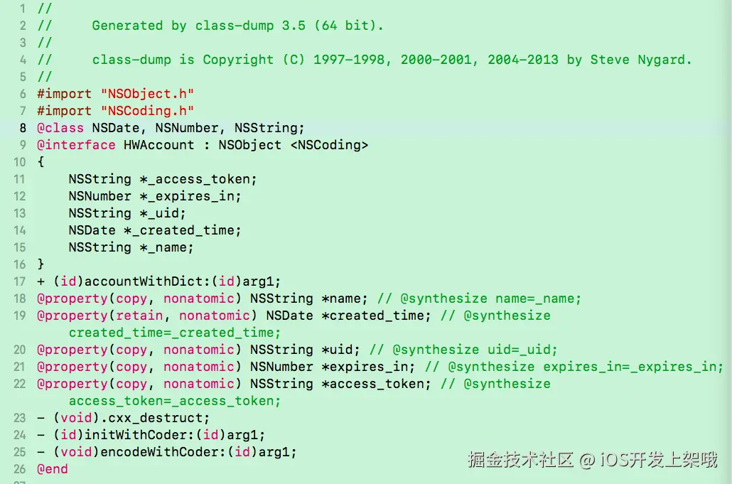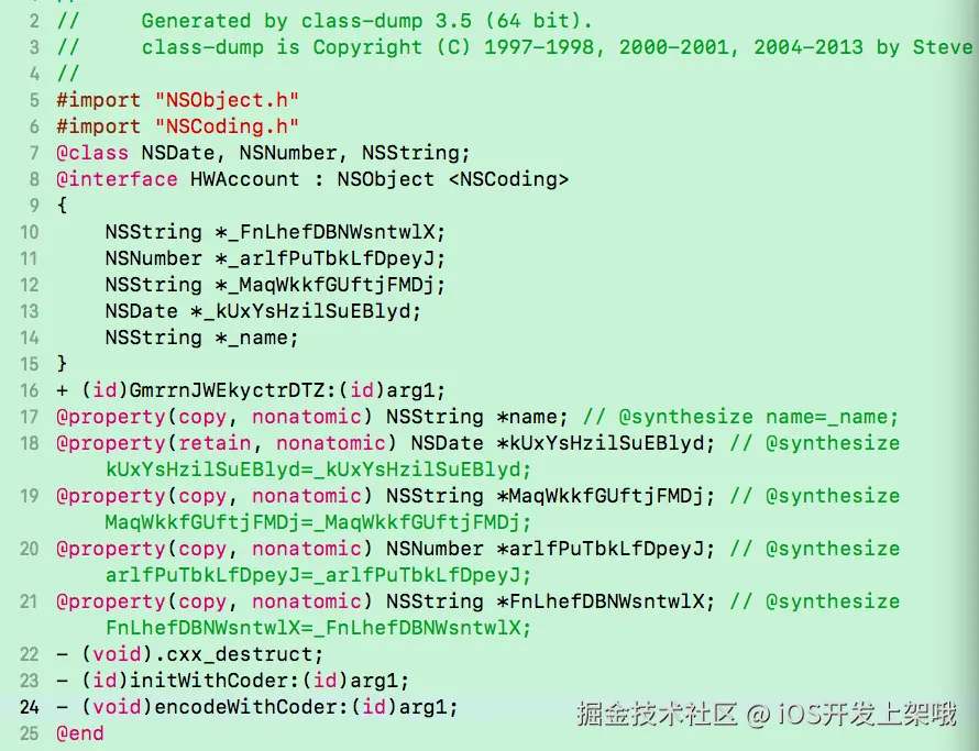 下面用class-dump弄过之后的结果和前文对照一下:还是有点作用的。