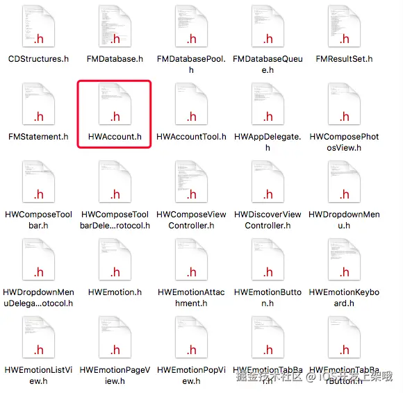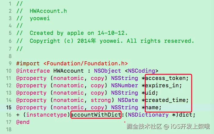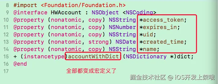 点击HWAccount.h后,里面的函数名,属性名也一样清清楚楚:
