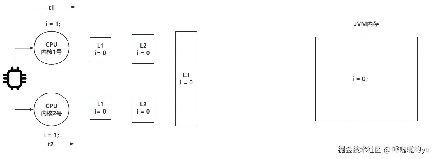 但是咱们判断的是x和y同时都是0的情况,如果出现这种情况,说明t1或者t2的两个操作,可能出现了指令重排序