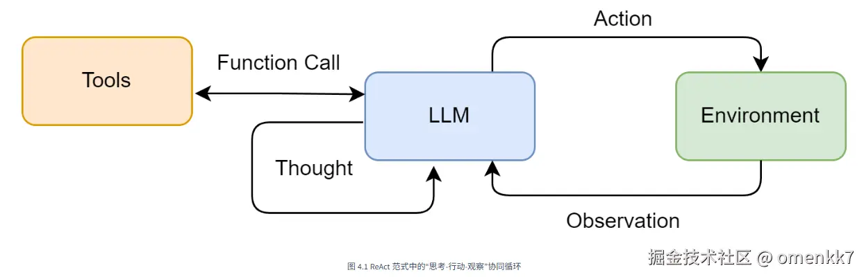 这正是 Agent 范式中经典的 ReAct(推理与行动) 思想的体现。