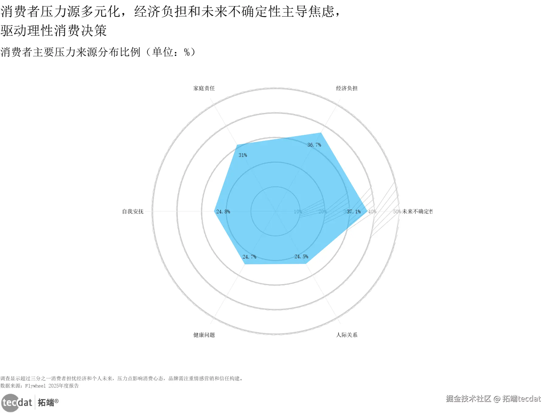 消费者主要压力来源雷达图表5数据EXCEL及图表PDF模板已分享到会员群