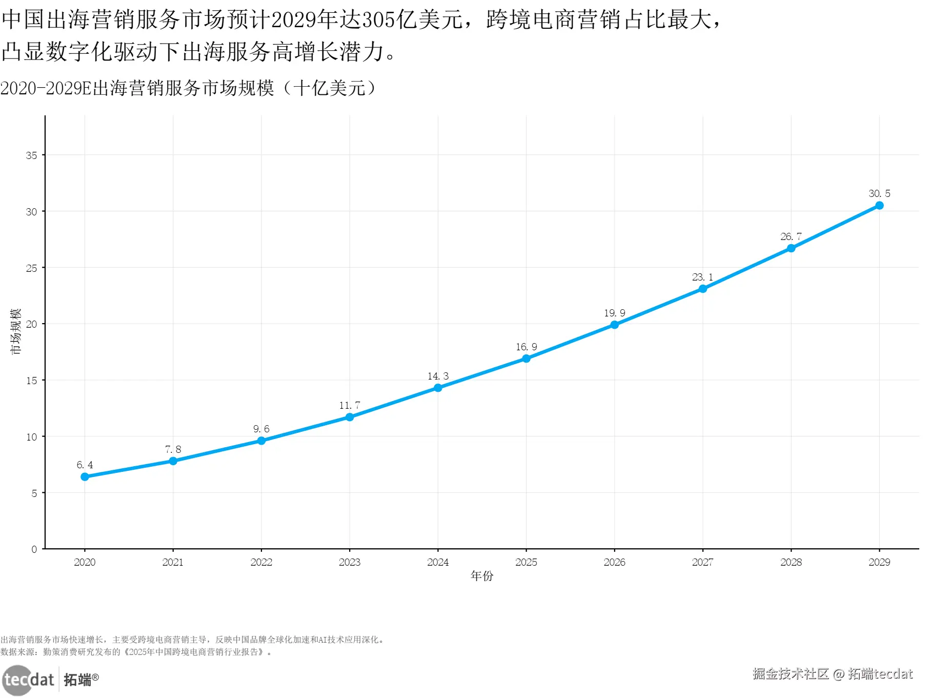 跨境电商市场规模增长折线图表1数据EXCEL及图表PDF模板已分享到会员群