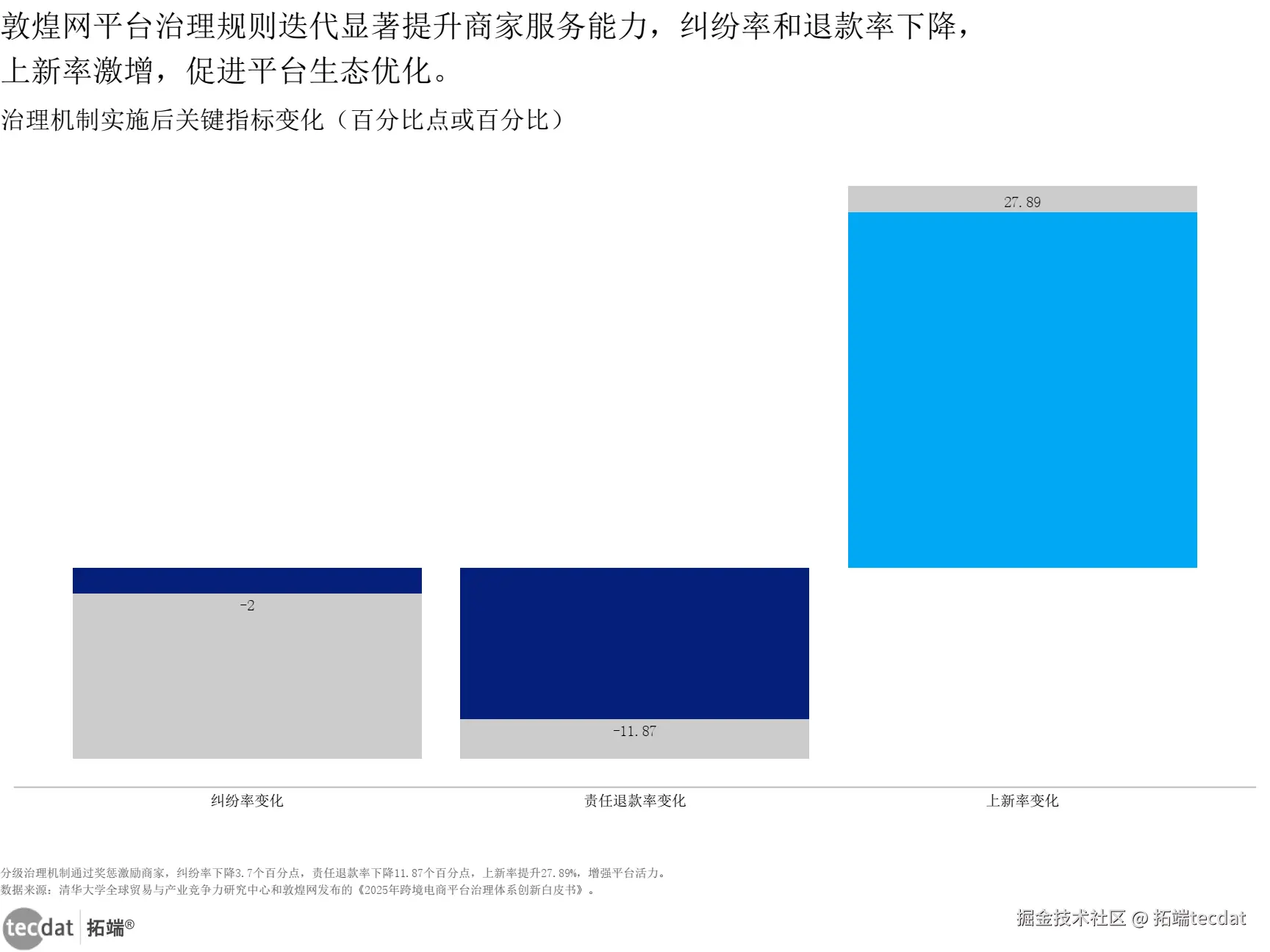 跨境电商平台治理体系持续完善,敦煌网等平台通过激励与控制双重机制规范商家行为,包括新手保护期、商家能力评级、违规处罚等,有效提升商家服务能力与合规水平(清华大学&敦煌网白皮书)。治理规则迭代成效显著:实施分级治理后,商家纠纷率下降3.7个百分点,责任退款率下降11.87个百分点,上新率提升27.89%,平台生态活力大幅增强(图表3)。3秒解读:合规经营已成为跨境电商的基本要求,平台精细化治理能显著提升商家运营质量与用户体验。行动建议:跨境商家需深度熟悉平台规则,重点关注知识产权、物流时效、售后服务等核心考核指标;可借鉴敦煌网优质商家运营策略,提升复购率与和解率,争取平台流量扶持。