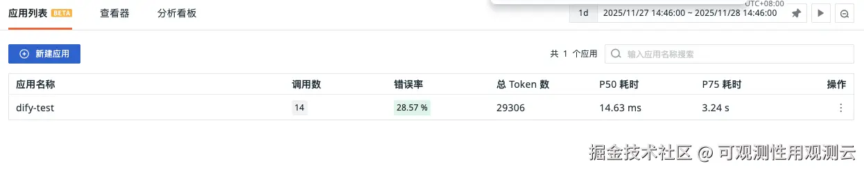 1、LLM 监测 - 应用列表