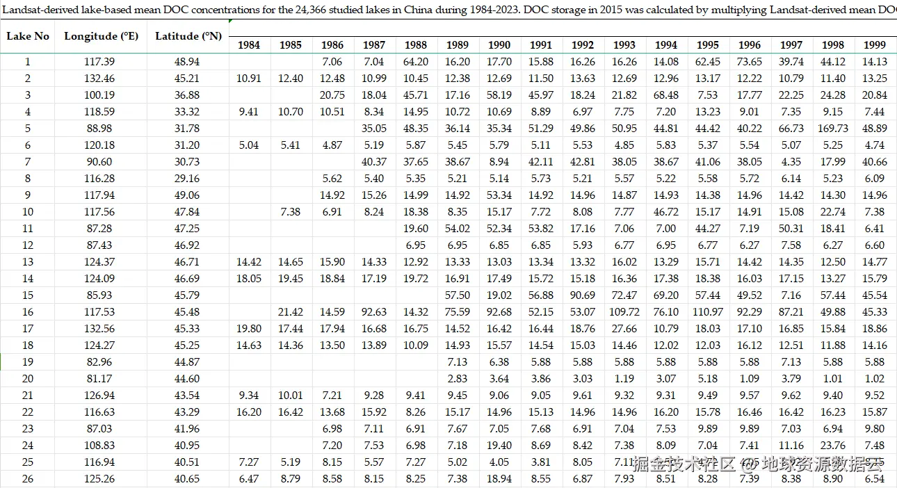 | 数据库(集)名称 | 中国湖泊有机碳浓度数据集 |