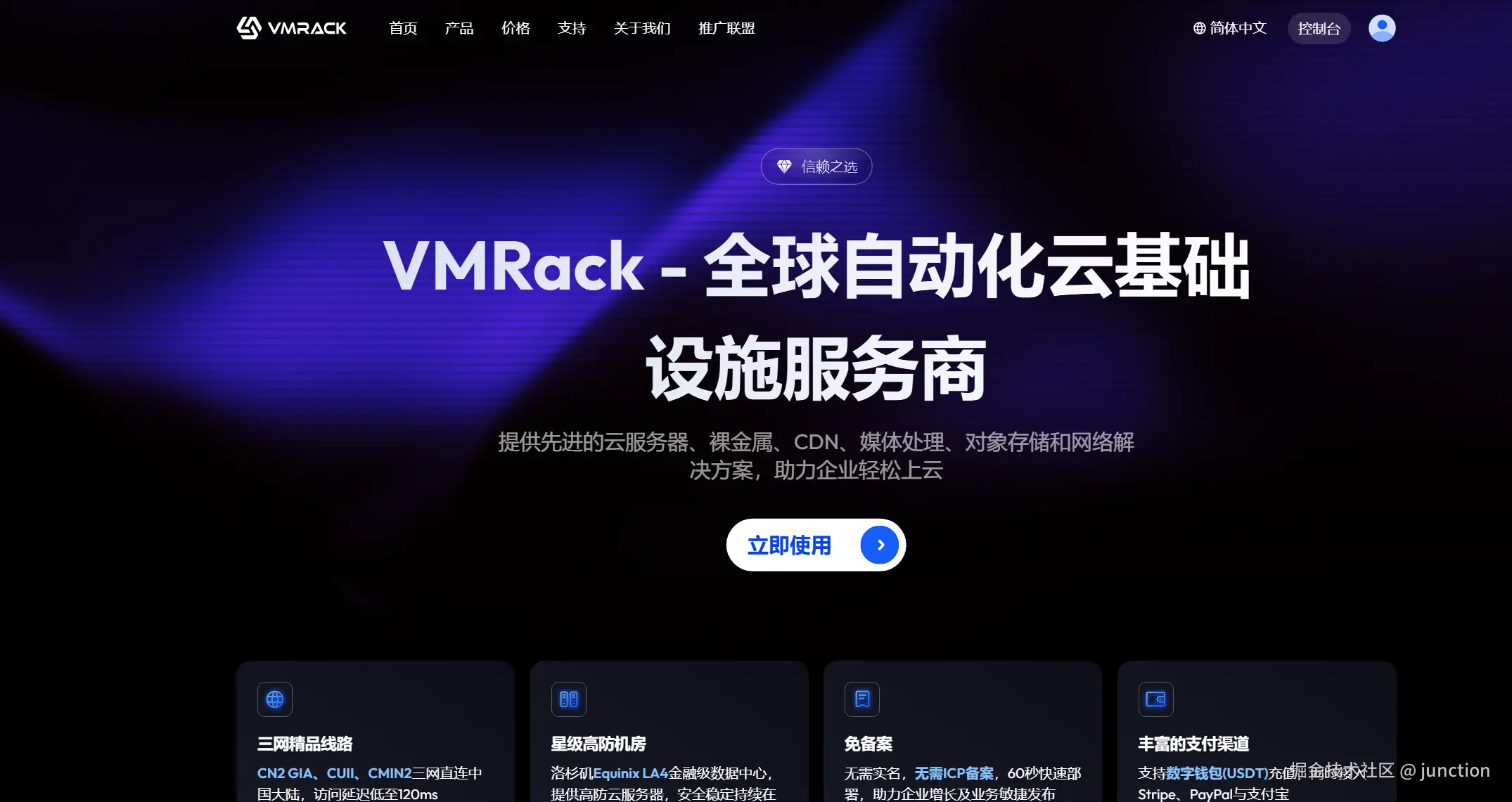 来到VMRack官网,注册登录后点击控制台