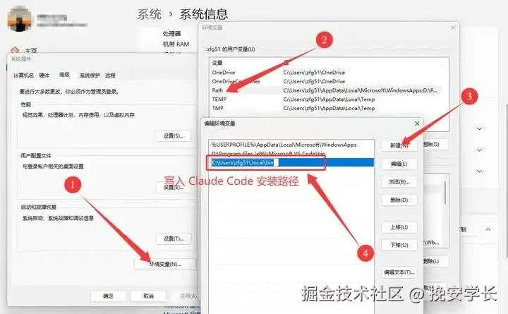 Claude 可执行文件所在的目录需要加入系统 PATH,否则 PowerShell 目前无法识别 claude 命令,