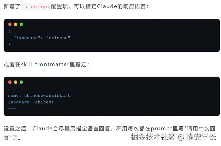 不过要注意,这个配置是"尽量"而不是"强制"。如果对话上下文是英文的,或者涉及代码和专业术语,Claude可能还是会混用英文。