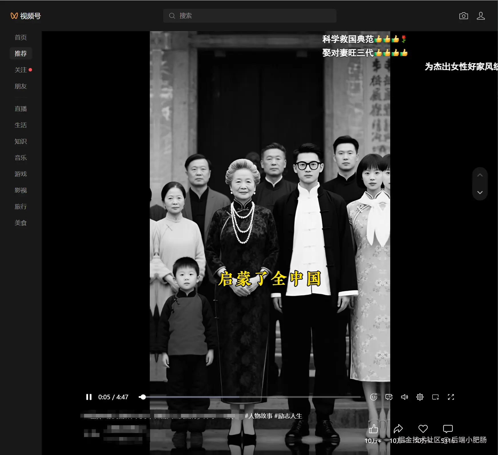 最近人物故事视频流量不错,社群里的群友问Coze工作流能不能做?我去看了一下视频号上的原视频(点赞10w+,转发10w+,小心心10w+),制作方式就是简单的图片,字幕时间线稍作合并处理后进行素材拼接: