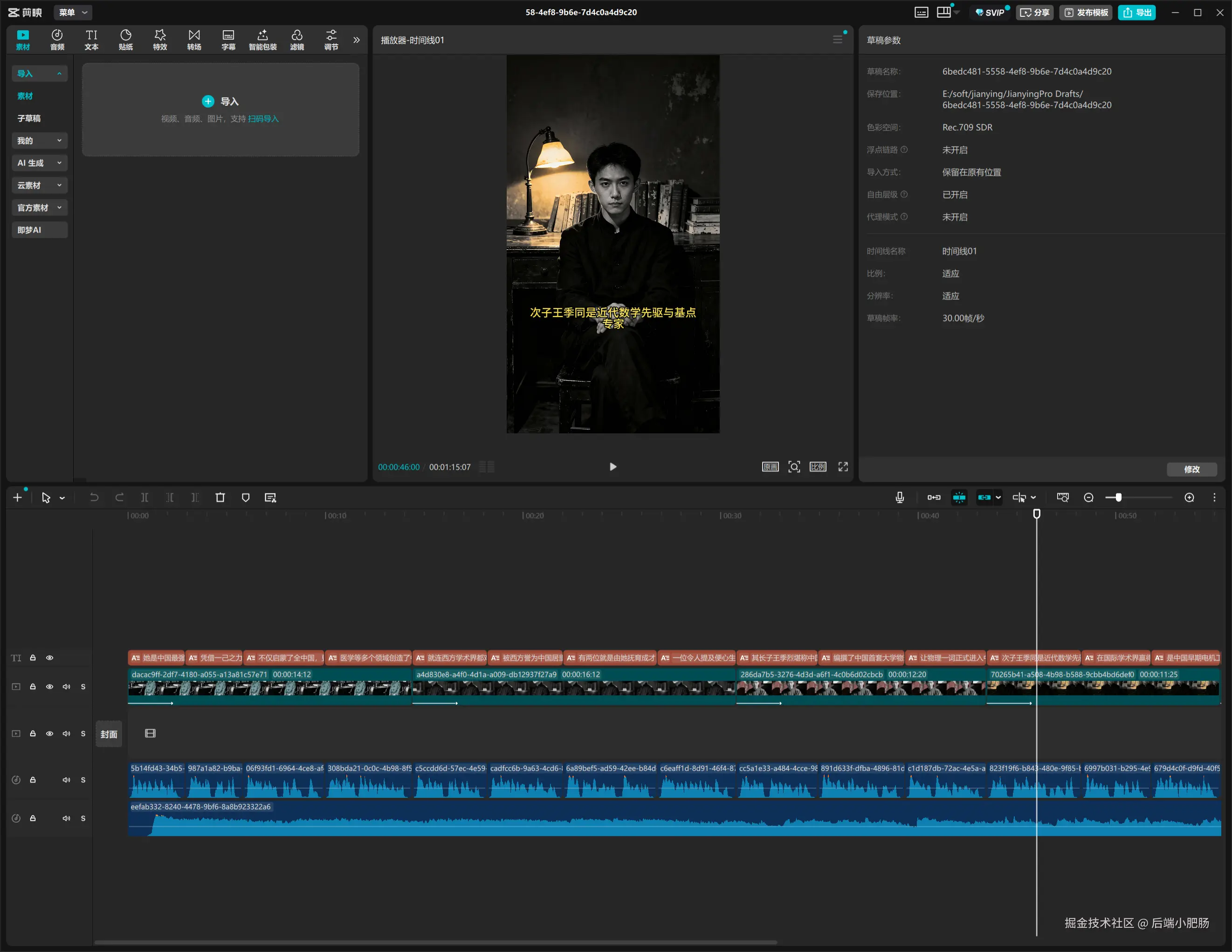 我们所要做的只是将其导入到剪映中即可获得完整视频(我做了前几个分段,主做展示使用):