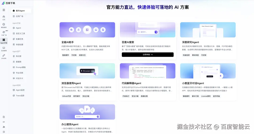 ****千帆官方Agent全新发布:****快速体验可落地的AI方案。
