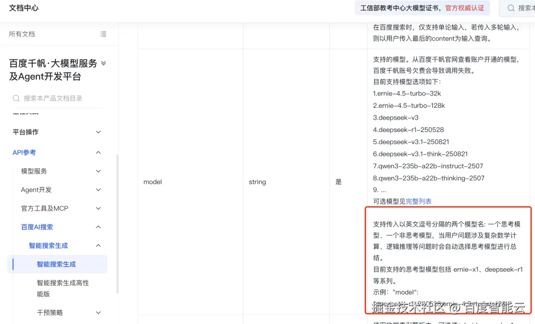 - AI搜索支持自适应开启模型思考能力。
