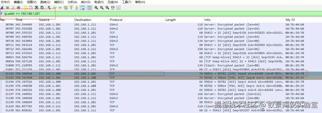 在流量包中找到与 192.168.1.201:58782 的 TCP 流