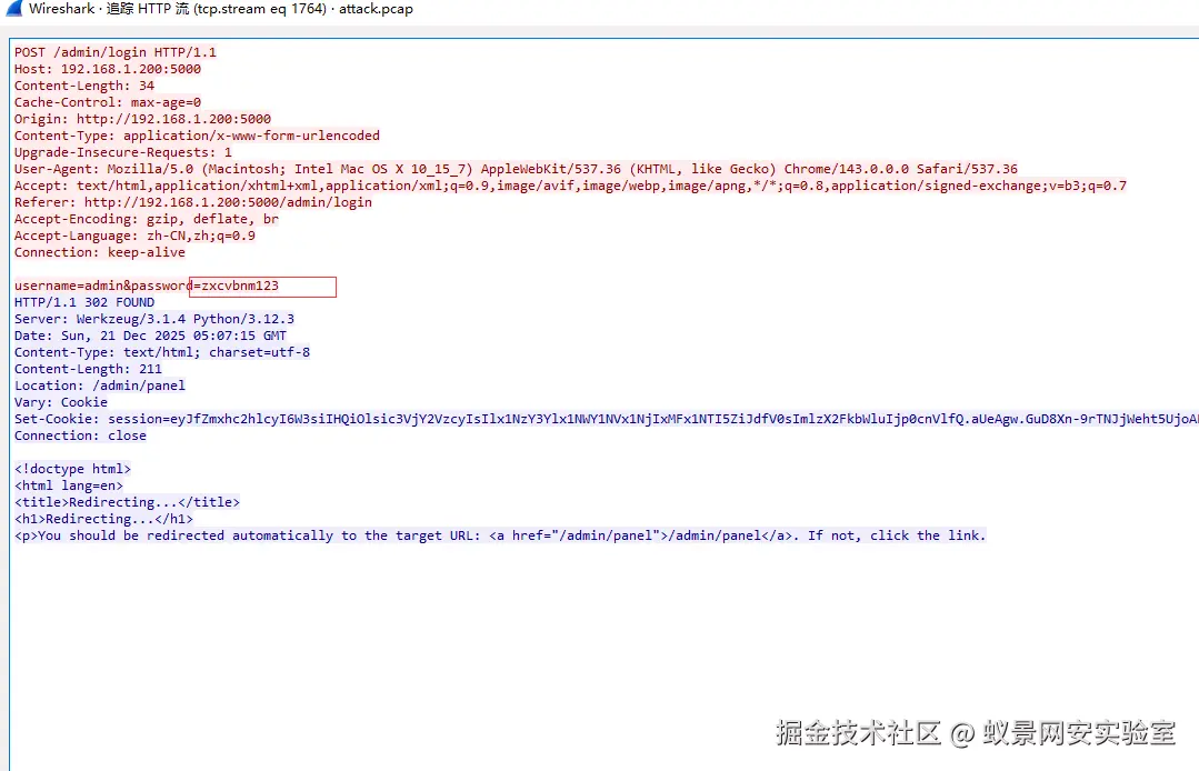 并找到最后一个login,右键追踪一下,就看到后台密码了