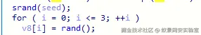 调用 srand(seed) 初始化随机数生成器,通过循环 for ( i = 0; i <= 3; ++i ) v8[i] = rand(); 生成 4 个随机整数,一共16个字节