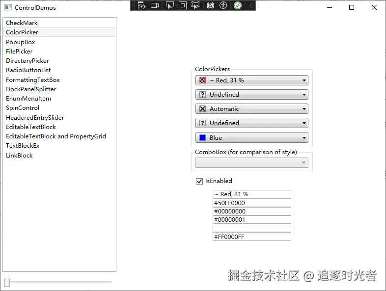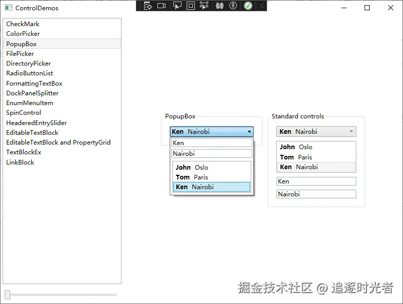 设置ControlDemos为启动项目,运行查看效果: