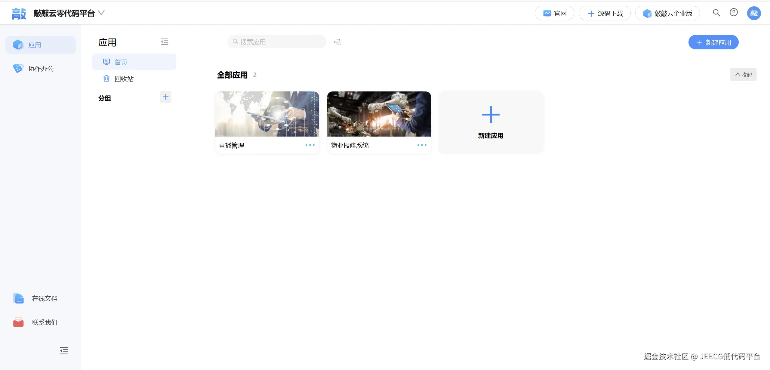 - 应用快速搭建功能,能够创建应用、表单和门户仪表盘、进行数据存储和数据统计分析