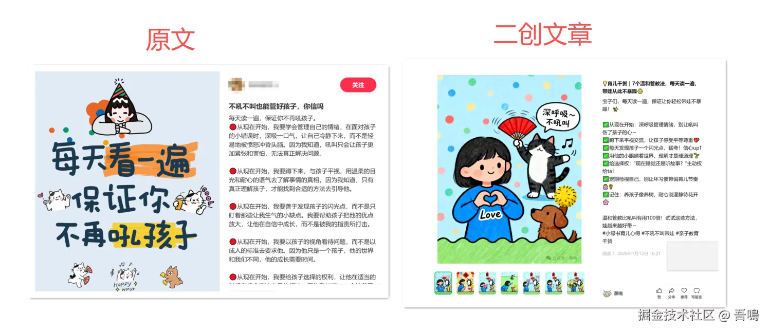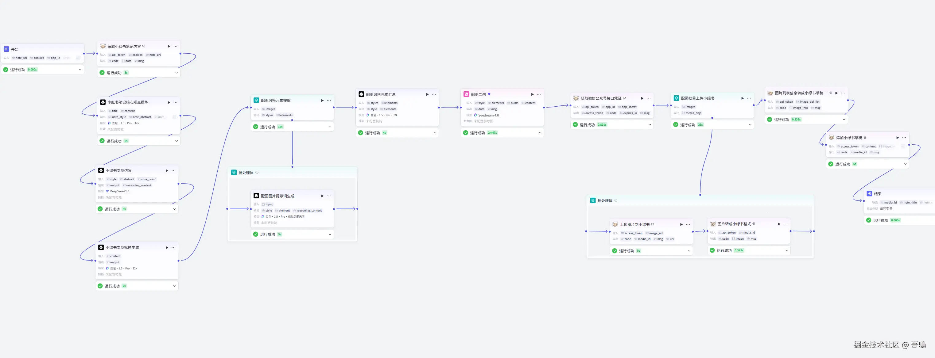 之前吾鳴有分享过一篇关于小红书二创的,比较简单,没有对接小绿书,而且配图没有进行二创,本文分享的工作流除了实现小红书的笔记文案二创外,还将进行配图的二次创作,并且支持直接发送小绿书,同时也可以发小红书。
