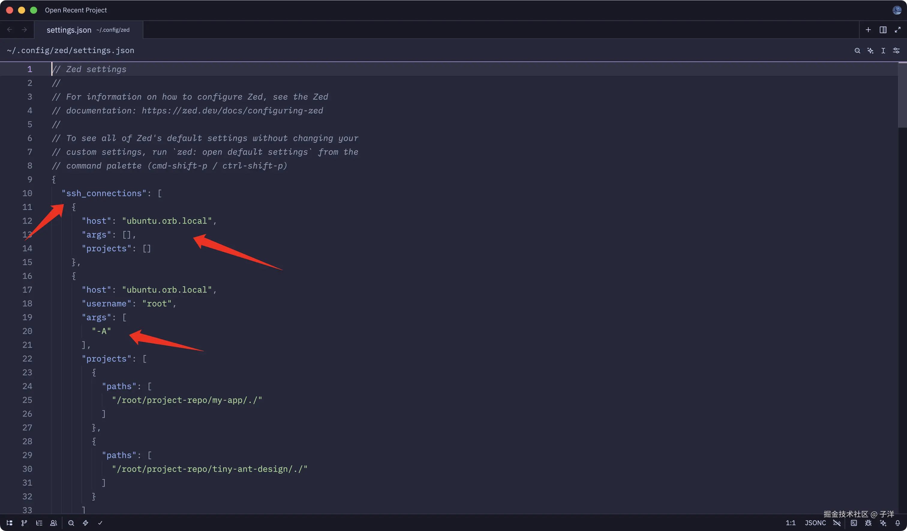 这里可以看到所有 SSH 连接配置,包括: username、args、projects, 如果你发现有重复的 SSH 配置,可以直接删除多余项。