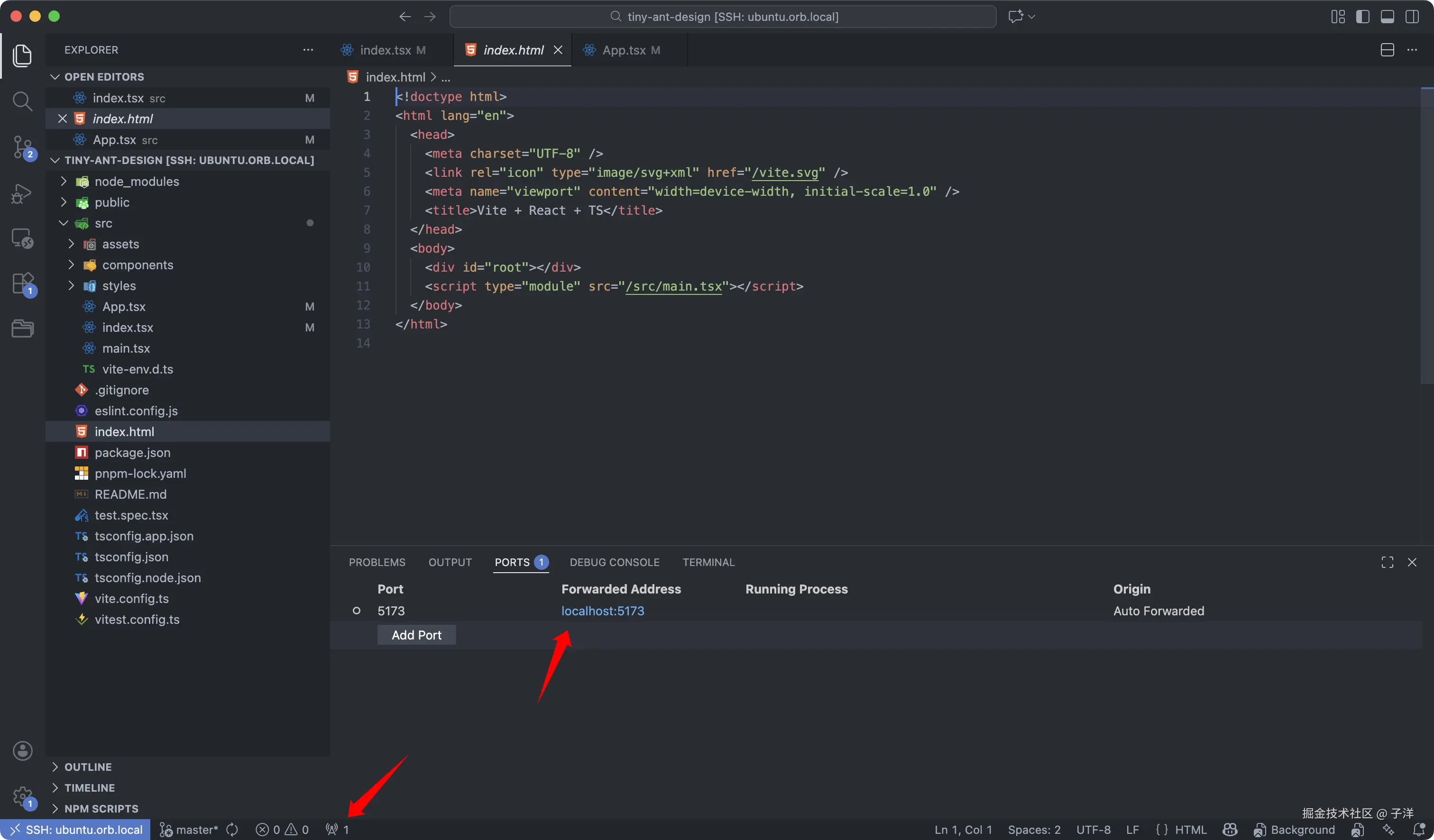- 点击 VS Code 底部的端口(信号塔)图标