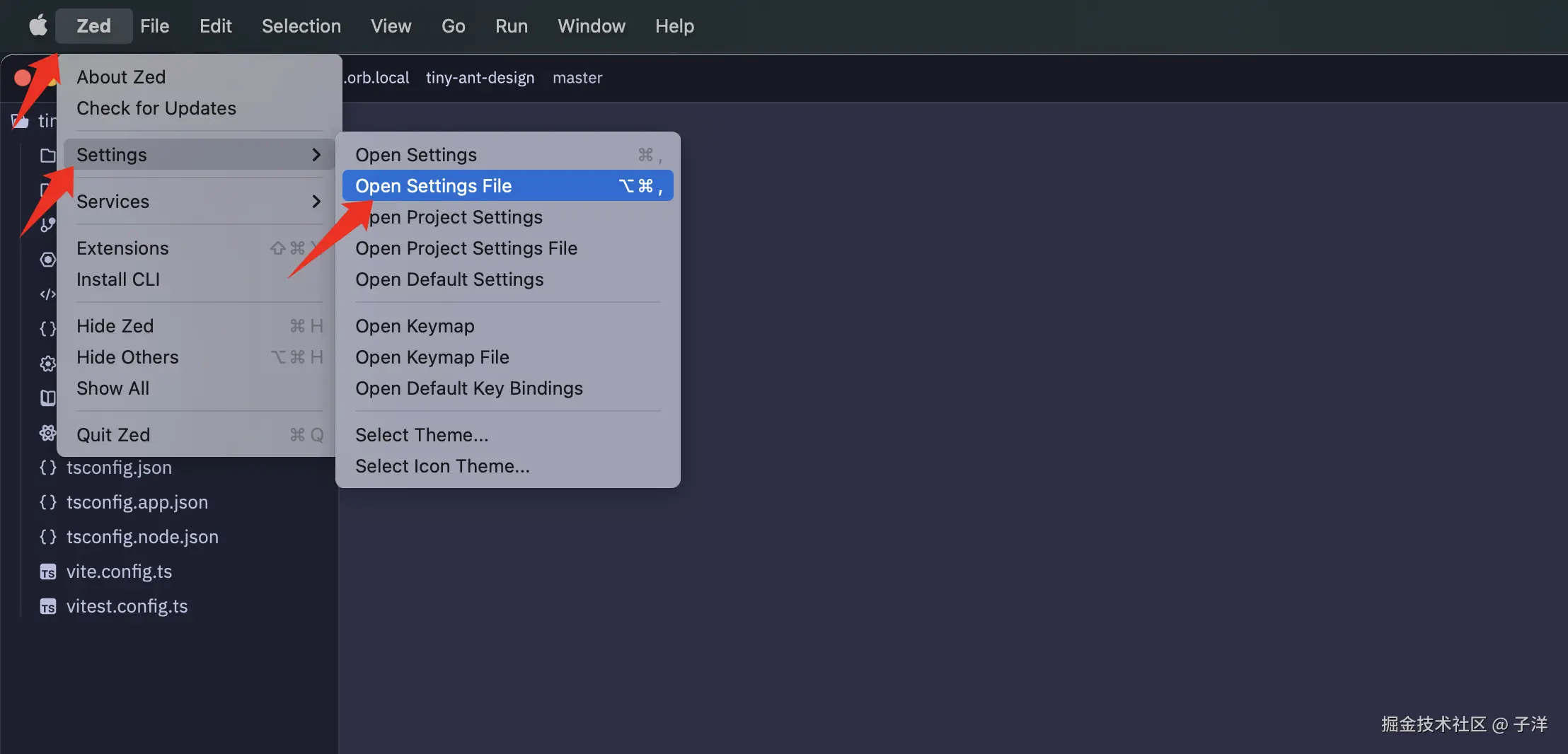 Zed -> Settings -> Open Settings File