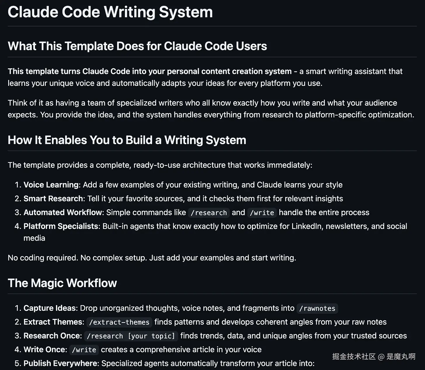 → 喂给它散步时的漫谈语音笔记 → 它将它们组织成连贯的研究主题 → 用我的确切口吻写了一篇完整的文章(从我自己的例子中提取!) → 自动创建 LinkedIn 版本(这篇文章就是其中之一!) → 所有内容都保存并准备好发布(包括抓取我在这里添加的模板仓库的截图!)" [这里是仓库]