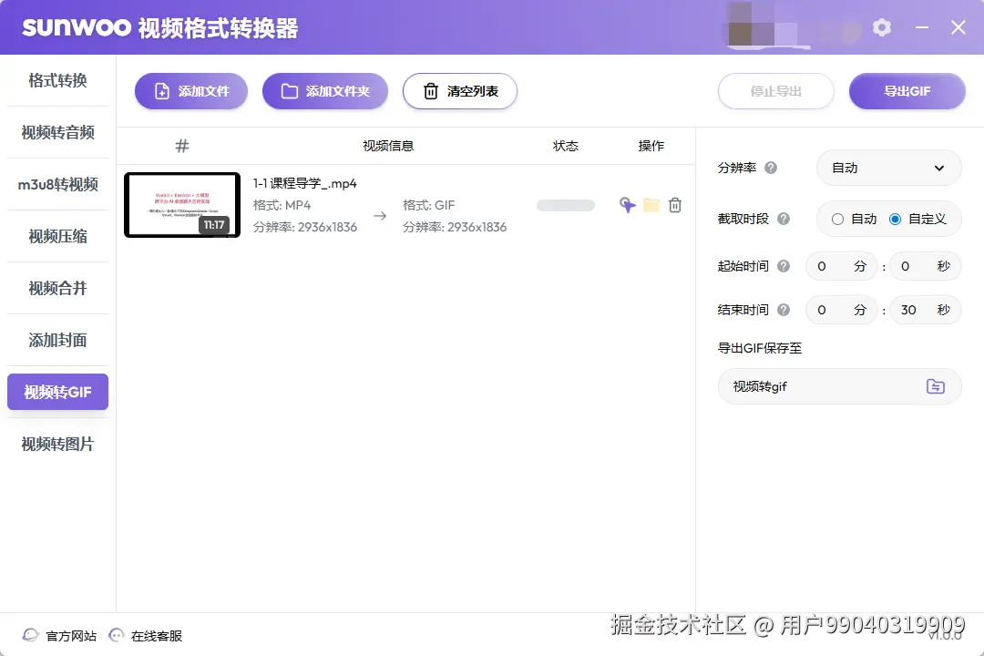 参数可调:帧率(5-30fps)、分辨率(原图/自定义)、颜色(32-256色)。1分钟的1080p视频,转30fps/256色GIF,耗时1分23秒,输出文件5.2MB。
