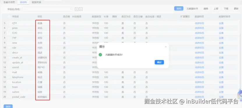 最后是代码调用层:在业务代码中调用已开发的元数据补齐智能体,同步实现字段自动获取、智能体返回别名解析结果、字段信息与别名统一保存至数据库的全流程逻辑,形成“模型支撑-智能体处理-代码落地”的闭环方案。