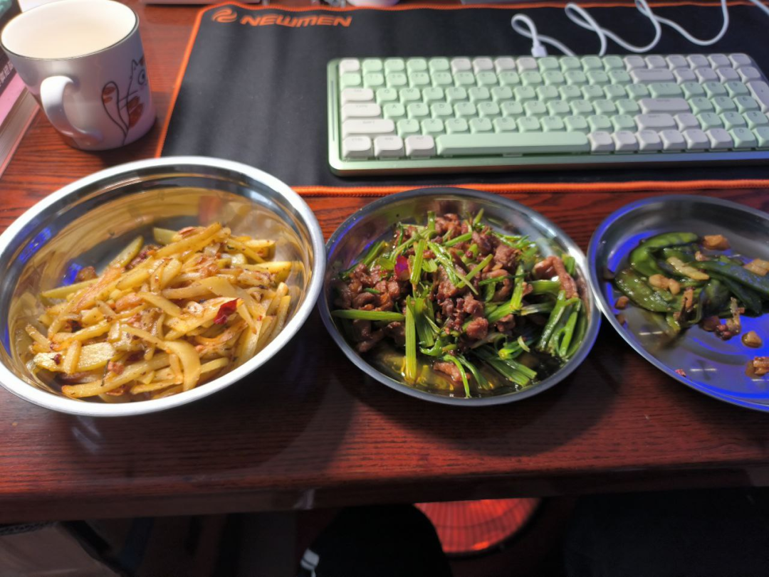 刚开始没在计划之内,芹菜肉丝都炒完了,才开始削土豆,笑死我了。