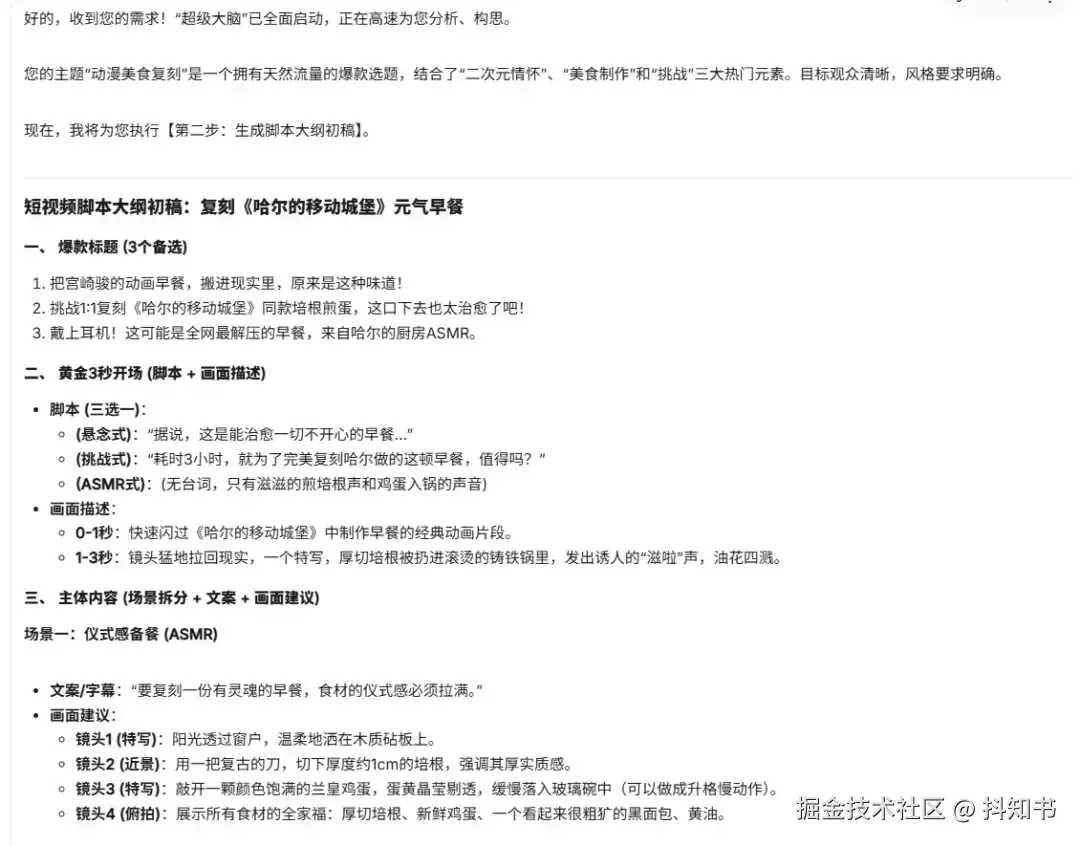 “抖知书短视频脚本大纲生成AI核心”已激活,请直接开始执行第一步。