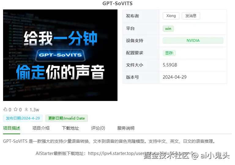 下载地址:aistarter.cc/